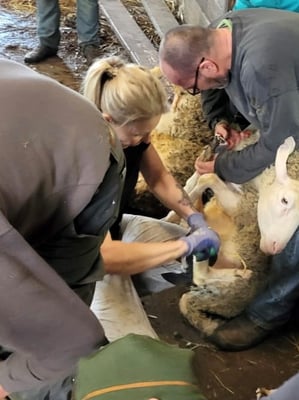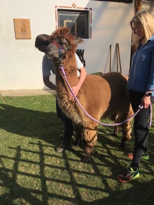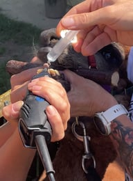 Unsere Kollegin Dr. Silvia Jordan übernimmt die Zahnpflege unseres Alpakas