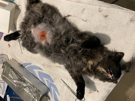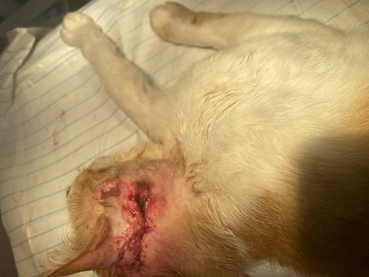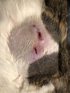 Ich habe Ihnen aber hier Bilder eines Streuners, den wir – wie so viele andere – nicht nur kastriert haben, wir mussten auch einige Bisswunden versorgen. Unkastrierte Kater verteidigen ihr Territorium, und das führt zu vielen Verletzungen (Bisse, Krallen die einhaken, können auch größere Wunden verursachen, die besonders in der warmen Jahreszeit schnell eitern). Auch FIV, das sogenannte Katzenaids wird durch Bisse verbreitet, und so ist diese tödliche Infektionserkrankung besonders unter Streuner weit verbreitet.