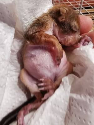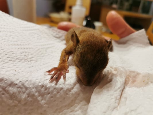 Das Muttertier wurde bei Baumschlägerung getötet. Die Kleinen waren da etwa eine Woche alt.