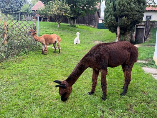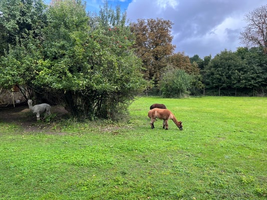 Unserer Alpakas genießen die Ruhe und den beginnenden Frühling.