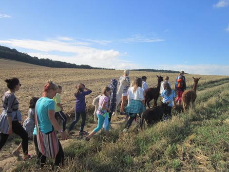 in den Ferien sind unsere Alpakas mit den Kindern eines Sommercamps unterwegs.